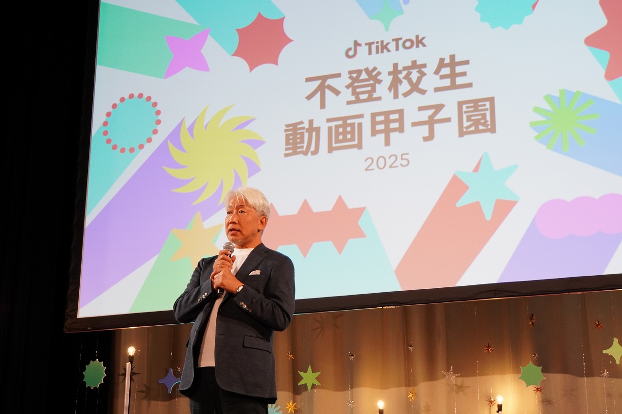 開会の挨拶に立った佐藤さんは、「多くの方々が、不登校や苦しい経験を糧にして、自分が表現したいことを形にして応募してくれました。TikTokという場が、もやもやしている気持ちを表現できる場、ちょっとでも自分が世界を変えていけると思える場であれたら嬉しく思います」と話しました。