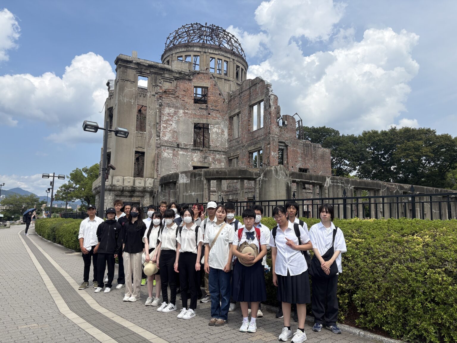 初日は広島を訪れ、平和学習として広島原爆資料館や平和記念公園を見学。資料館に展示された記録写真や当時の資料を目にした生徒からは「当時の情景や被爆者の気持ちを想像し、胸が痛くなった」との感想が多く寄せられました。現地に立ち、平和の尊さについて考える貴重な機会となりました。
