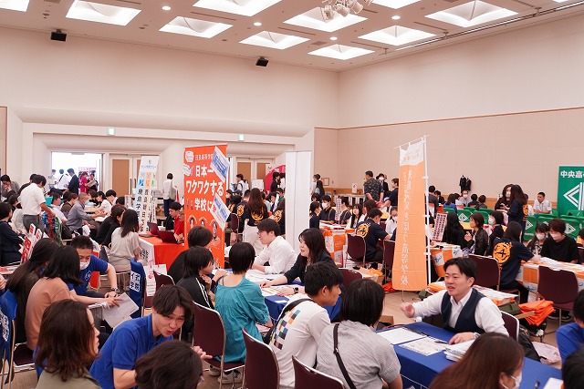 各学校の個別相談ブースには、多くの保護者やお子様が訪れ、先生方の説明に耳を傾けていました。