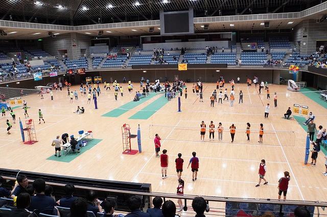 メインアリーナでは、ソフトバレーボール、ドッジボール、卓球が行われました。