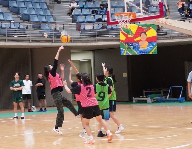 サブアリーナで行われた3×3バスケットボールは、男女混合リーグと女子リーグに分けて実施。選手たちはコートの中を縦横無尽に駆け回り、ゴール下では激しい攻防が繰り広げられていました。