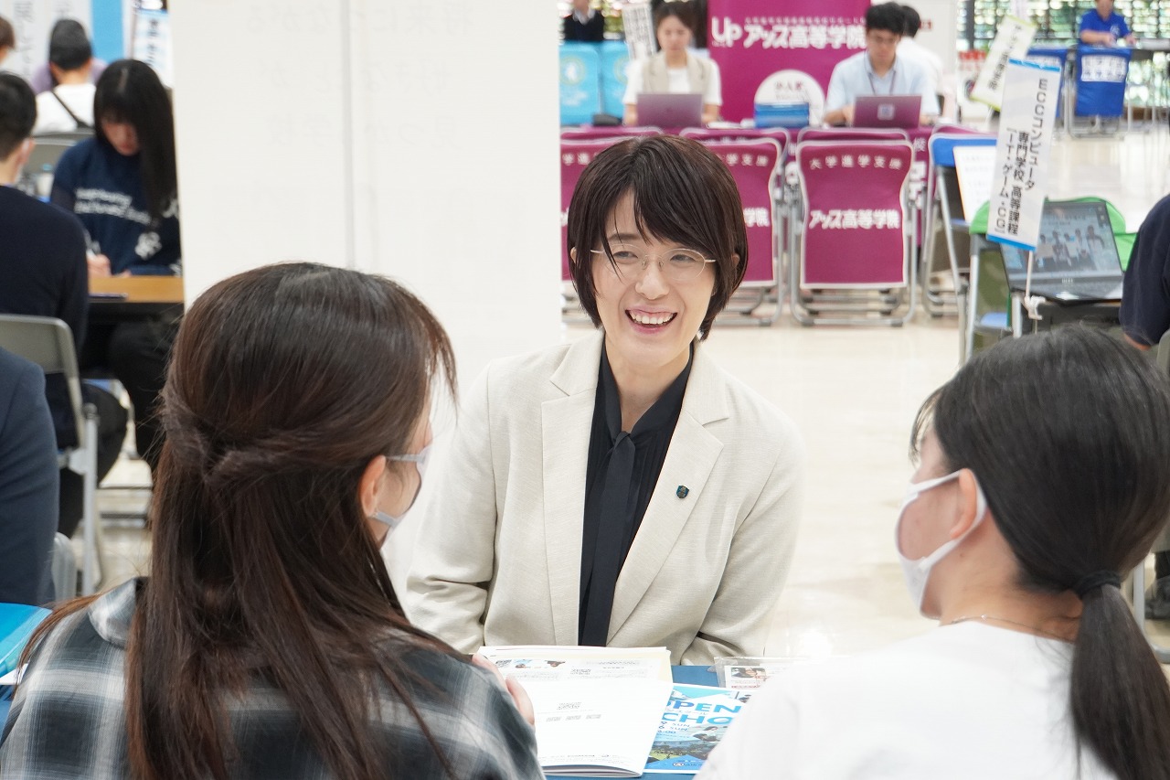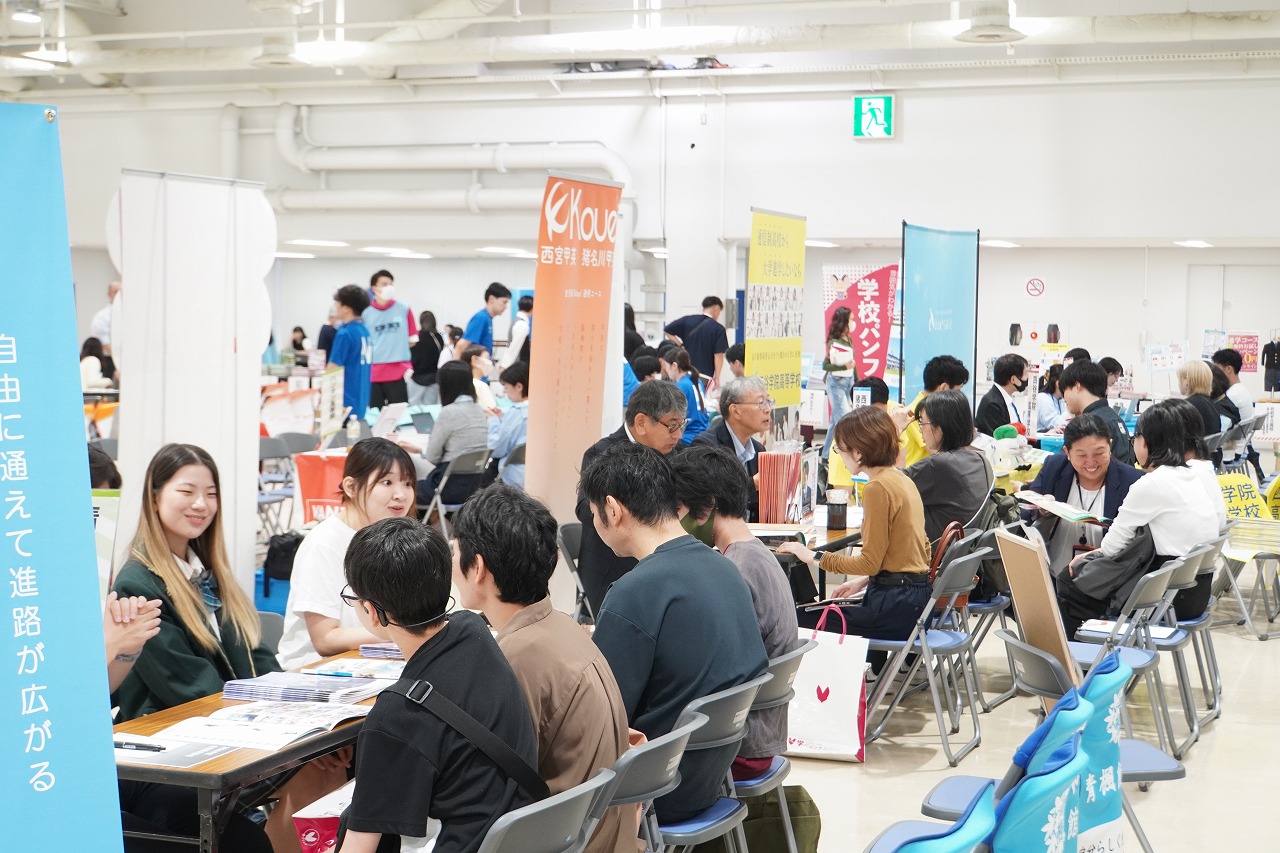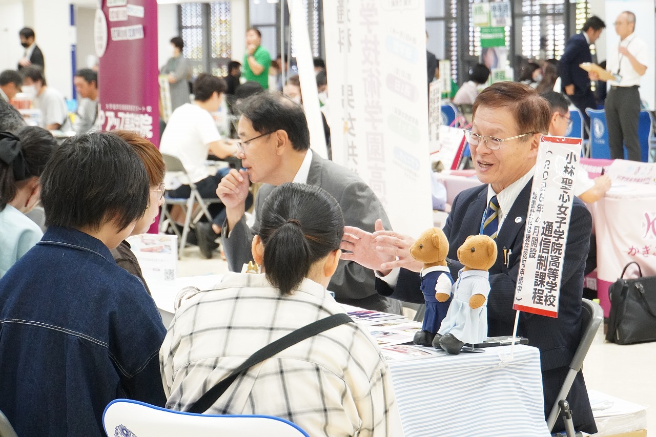 各学校の個別相談ブースには、多くの保護者やお子様が訪れ、先生方の説明に耳を傾けていました。