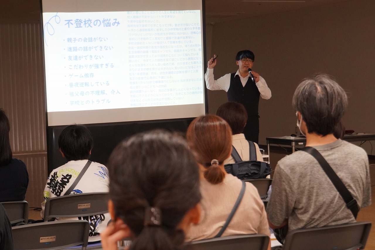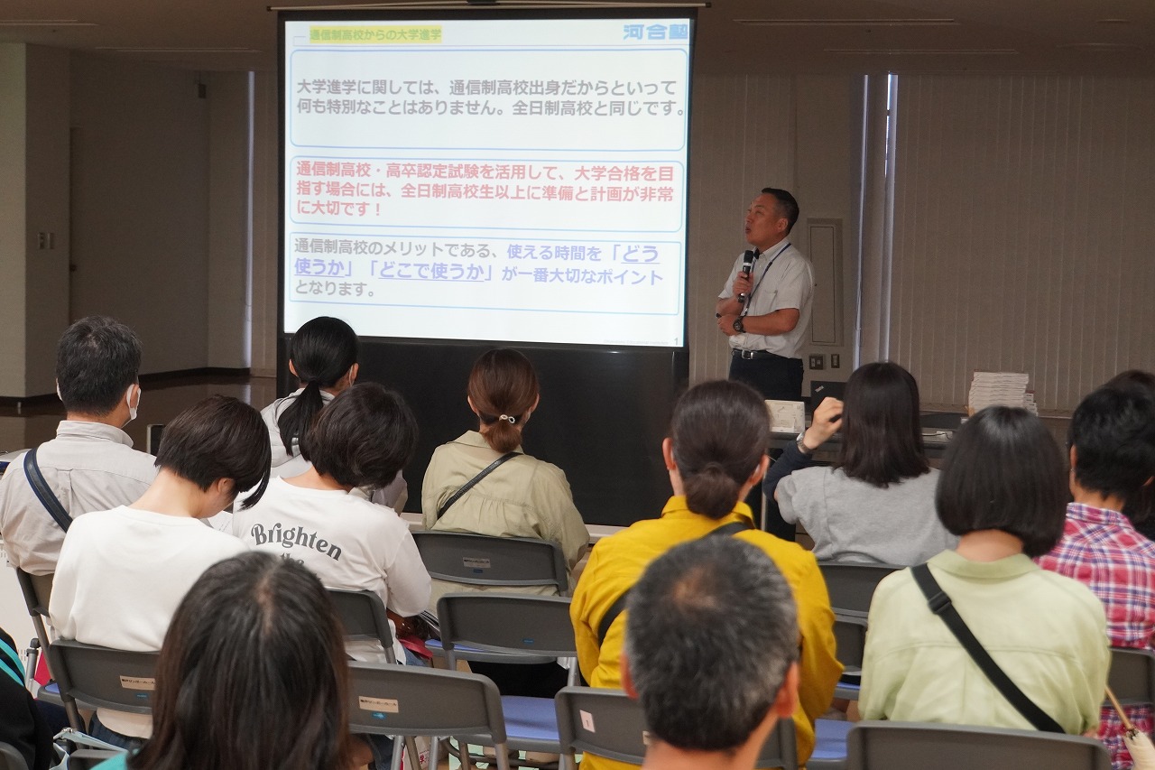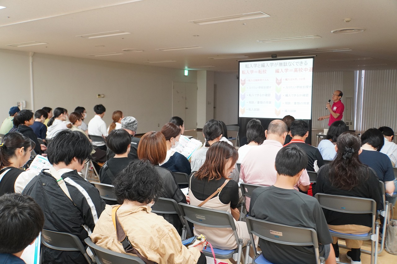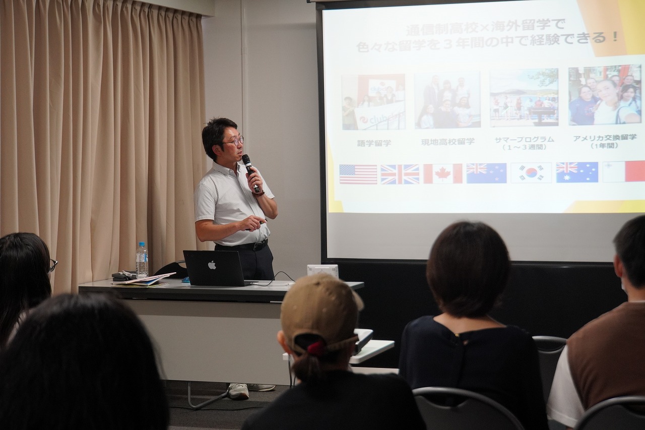 今回は、「通信制高校・サポート校のしくみ」「中等部・フリースクール」「通信制高校だからこそできる留学」「大学進学」「学校を選ぶ前にやっておきたい気持ちの整理」をテーマにした講演が行われました。