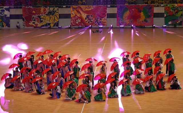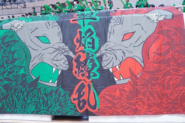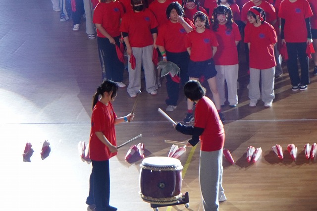 パフォーマンスは、キャンパスで決めたモチーフやスローガンが表現されていたり、太鼓や旗などの小道具が使われていたりと、生徒たちの工夫が盛り込まれ、見応え抜群でした。皆が一丸となったパフォーマンスのかっこよさに、観客からは大きな拍手が沸き起こっていました。