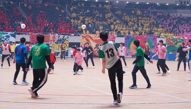 体育祭の幕開けを飾ったのは、各キャンパスの有志によるダンス。キャンパスの枠を超えたパフォーマンスに、会場の熱気も高まっていきます。