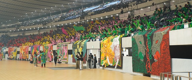 会場には、バルーンなどの応援アイテムや拍手で懸命に応援する生徒たちの声援が響いていました。