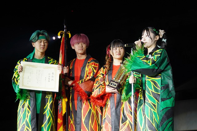 とくに優れた装飾に贈られる「芸術賞」と、すべて種目の合計得点によって決まる「総合優勝」には、横浜関内キャンパスが輝きました! 賞状と優勝旗を受け取った団幹部は、「人見知りで、こうして人前に立てるようになるとは思っていなかった」と過去を振り返りつつ、優勝の喜びや仲間への感謝を語りました。