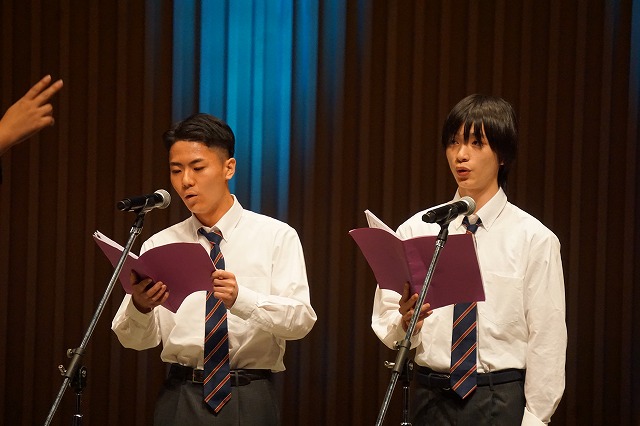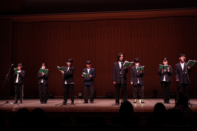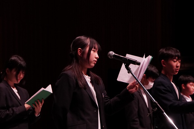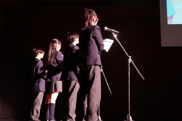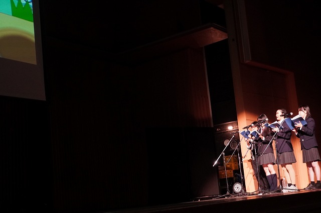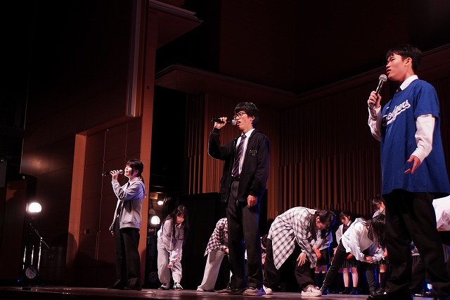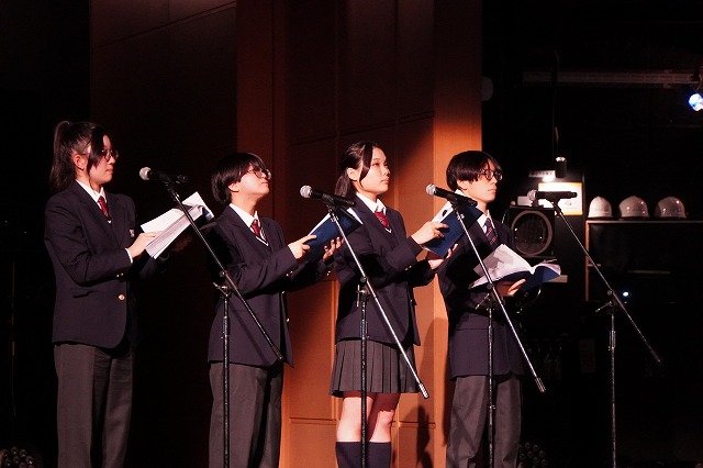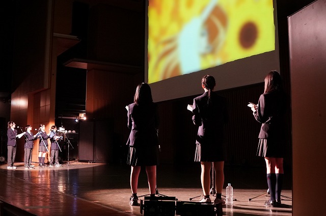 そのほかにも、動画発表や保護者によるコーラス、短歌の受賞作発表などがあり、盛りだくさんの内容でした。パフォーマンスの前の生徒には「頑張れ!」といった声援が贈られ、発表を終えると大きな拍手に包まれていました。