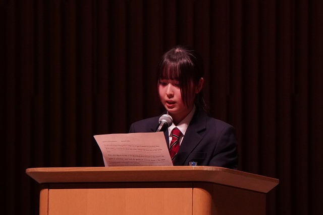 ▲「英語版 青年の主張」では、短期留学で学んだことや好きな漫画の魅力など、生徒たちが感じていることを英語で生き生きとスピーチしていました。