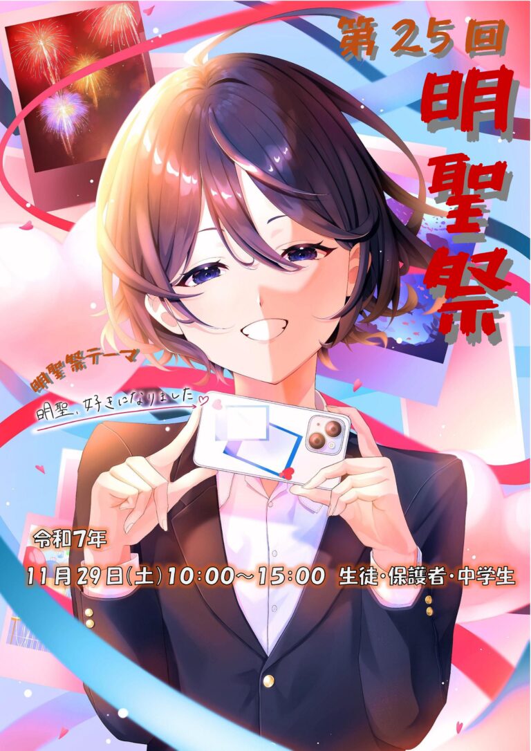 今年度の明聖祭テーマ「明聖、好きになりました」に沿った可愛らしい装飾が玄関に施され、また催事CMが流されました。