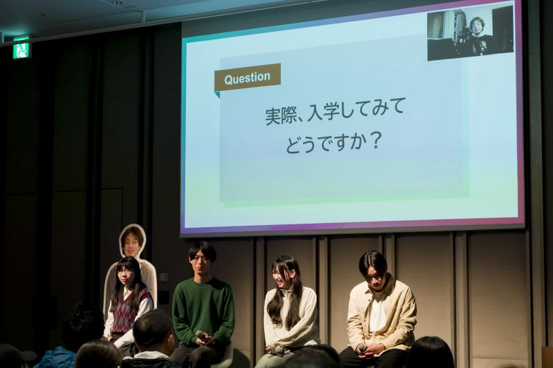 「実際に入学してどうか」という率直な質問も。課外プログラムを目的に入学した学生は、「めちゃめちゃ満足している」とし、長野県での農業体験や宮古島のホテルで1カ月のインターンシップなどの課外プログラムに参加した経験を伝えました。「行った先でも授業を受けられるので、長期のプログラムも夏休みなどの休みの期間以外でも参加できるのはすごく効率的でした」と、オンライン大学ならではの時間の使い方にも言及しました。