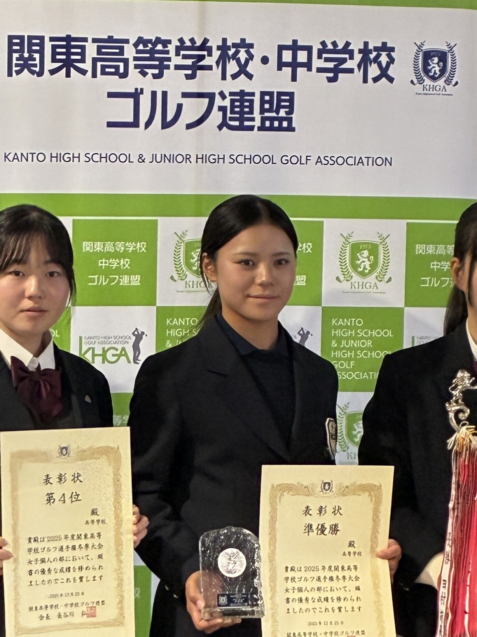 第一学院高等学校 スポーツコース ゴルフ部の仁科優花さんが2025年12月24日(水)、25日(木)に開催された「2025年度 関東高等学校ゴルフ選手権冬季決勝大会 女子・個人の部」に出場し、第2位の成績を収めました!