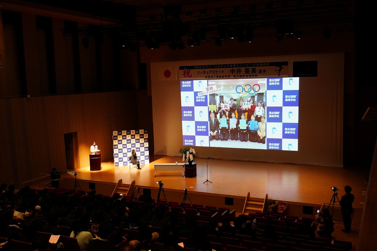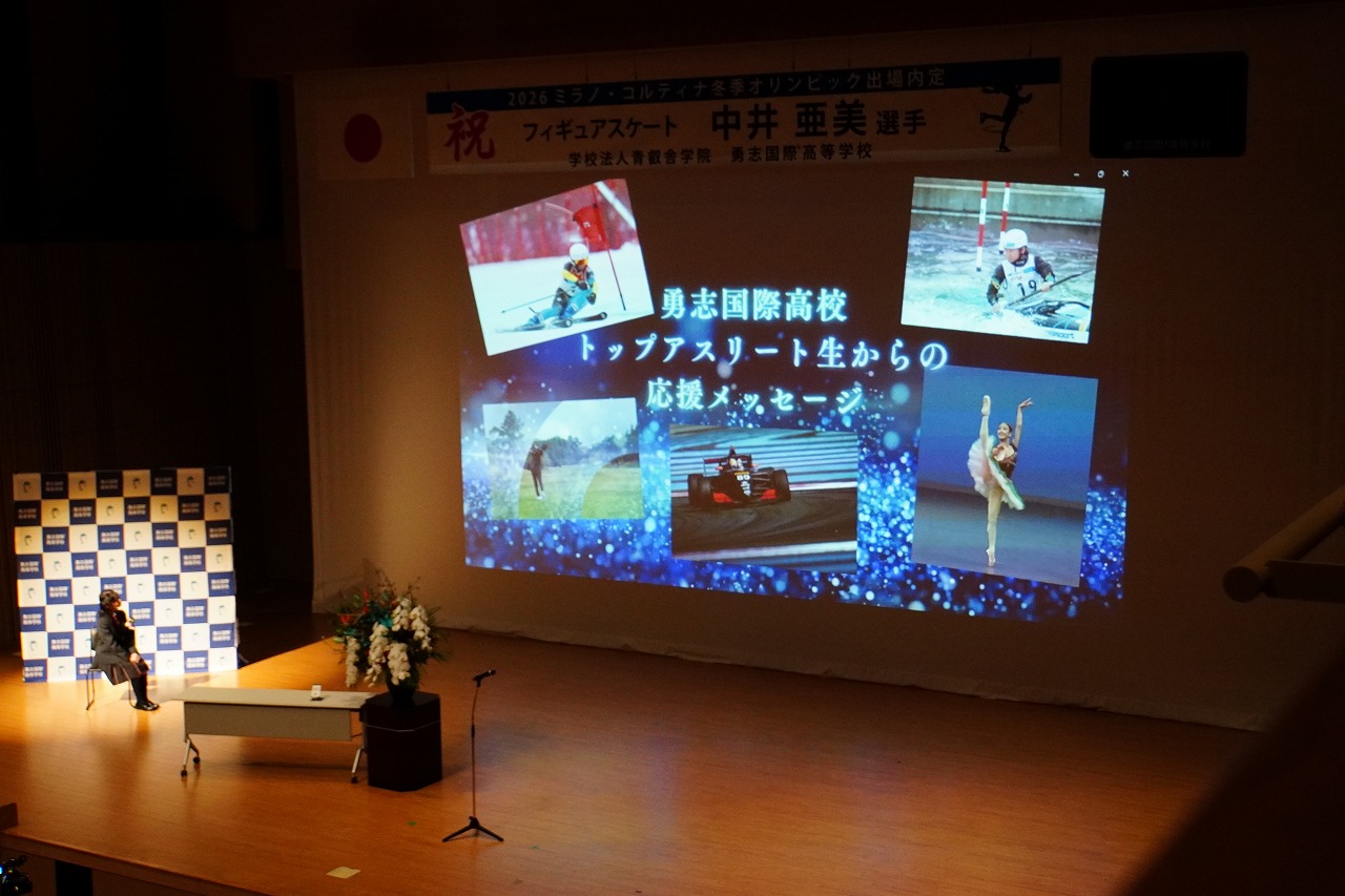 勇志国際高等学校は、1月15日(木)におおたかの森ホール(千葉県流山市)にてミラノ・コルティナ五輪フィギュアスケート女子日本代表となった中井亜美さんの壮行会を開きました。