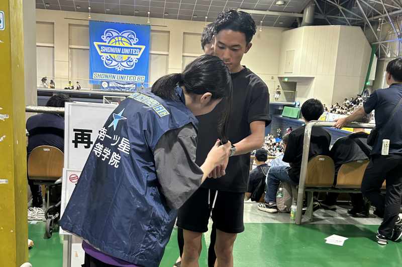 16日は、湘南一ツ星高等学院の名を冠した“冠試合”。観客席で応援をするだけでなく、会場設営や配布物の準備、カメラマンとして試合を撮影するなど、ボランティアとして運営のサポートを行いました。