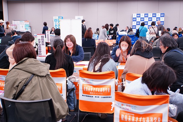 各学校の個別相談ブースでも、学校ごとの特色について説明を受けたり、入学や学校生活のことを質問したりする生徒や保護者の方が多くみられました。