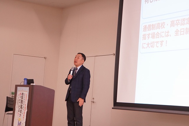 「通信制高校・サポート校のしくみ講演」では、学びリンク代表の山口教雄が通信制高校の卒業条件や通い方、学費などを解説。「全日制高校とどう違うの?」「高卒資格を取る条件は?」「サポート校って何?」といった疑問にお答えする講演となっております。