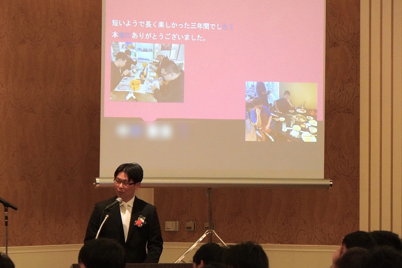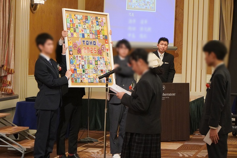 式辞を述べた太田功二校長は、卒業生の3年間を振り返りながら、新しい門出を祝福。「最後の話」として語られたのは「ドラえもんがひとつだけできなかったこと」という話。「ドラえもんは、のび太の災難を一時的に解決できても、ジャイアンやスネ夫の意地悪を止めることはできませんでした。これは、どれだけ技術が進歩し便利な道具が開発されても、人の心を動かすことは難しいことを表しています。AIやロボットなどの技術の進歩により便利な世の中になっていく時代だからこそ、今日の話を大切にしてほしい。夢や信念、熱い心をもって人の心を動かすことのできる存在を目指してほしい」と願いを込めました。そして、最後には「迷ったり、困ったことがあったら、いつでも帰ってきてください。東朋が君たちの居心地のいい居場所です」と涙ながらに伝えました。