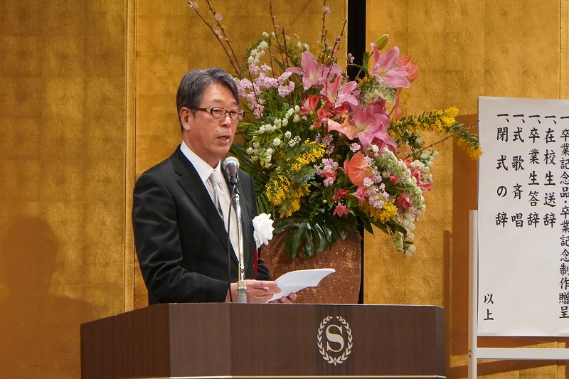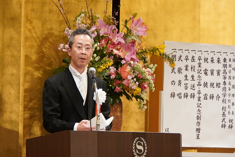 祝辞を述べた学校法人岡崎学園理事長で東朋学園高校の岡﨑泰道校長は、入学時に不安な表情をしていた当時の生徒たちを振り返りながら「いま晴れやかな表情で卒業式を迎えられていることは大変うれしく思います。これから新しい生活のスタートです。勇気を出して一歩前に踏み出してください。みなさん一人ひとりに無限の可能性があります。自分を信じ、自分の可能性にかける勇気と決断が、これからの人生を切り拓いていきます。しっかりと前を見据えて、自分の選んだ道を堂々と進んでいってください」とメッセージを送りました。