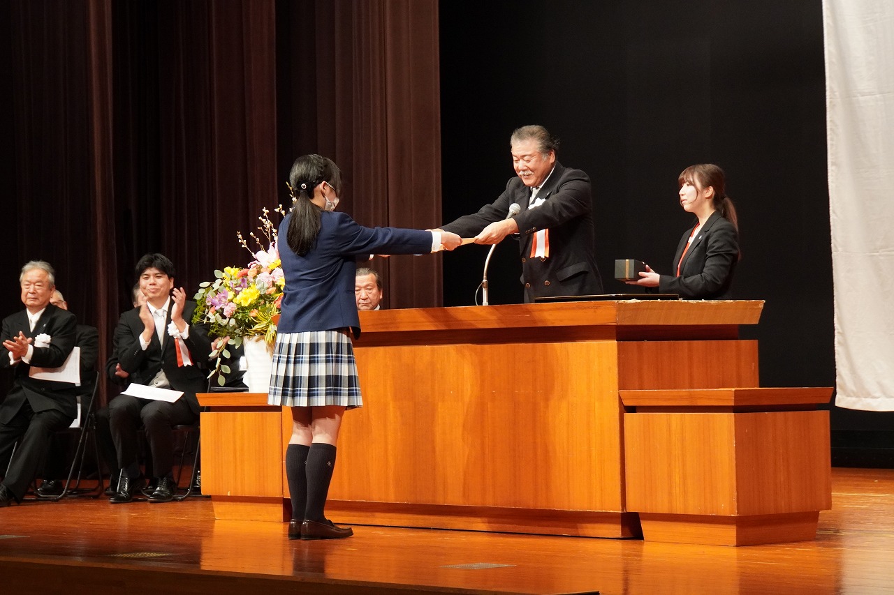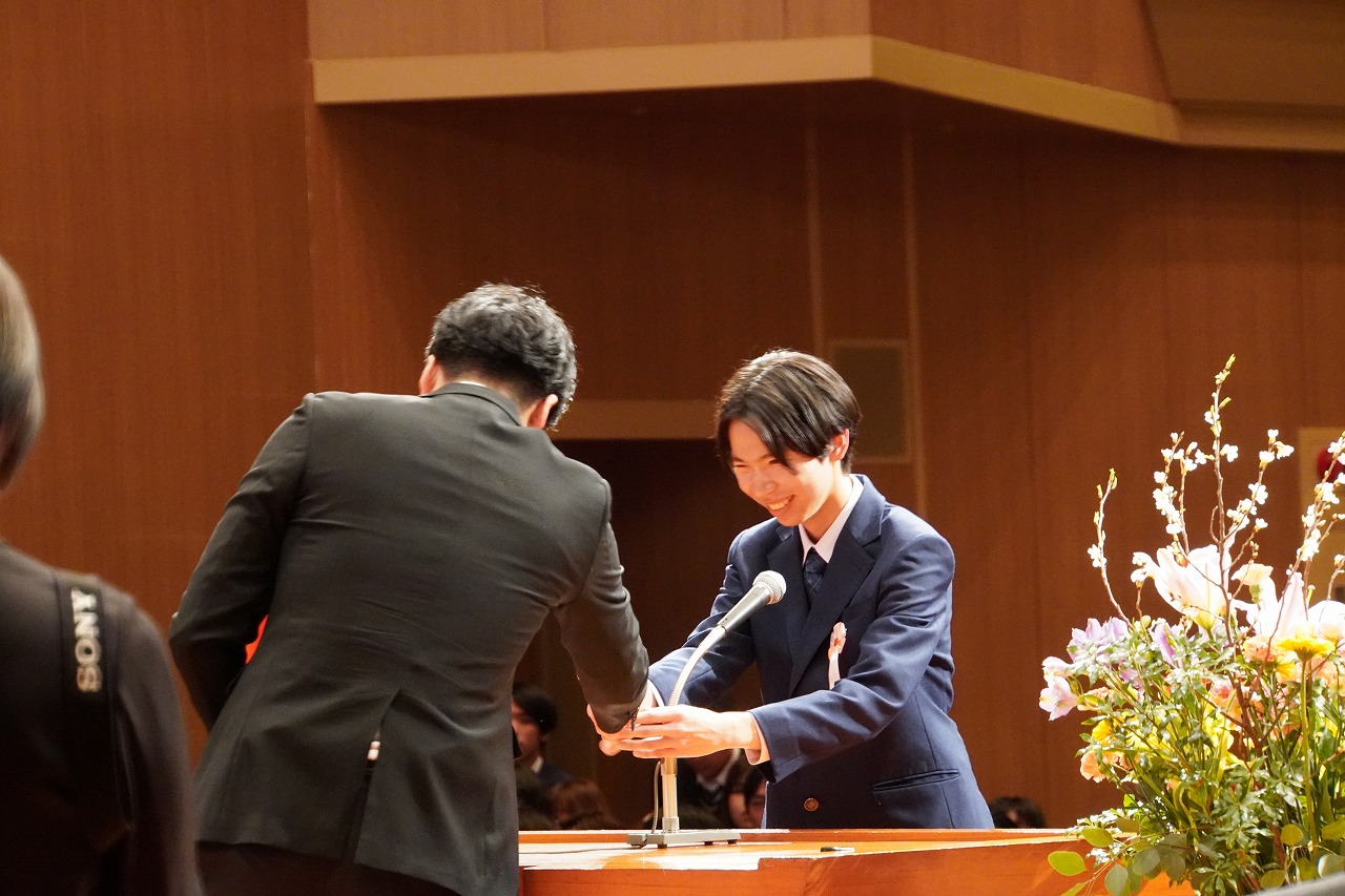 卒業証書授与では一人ひとりの名前が読み上げられ、代表生徒が卒業証書を受け取りました。