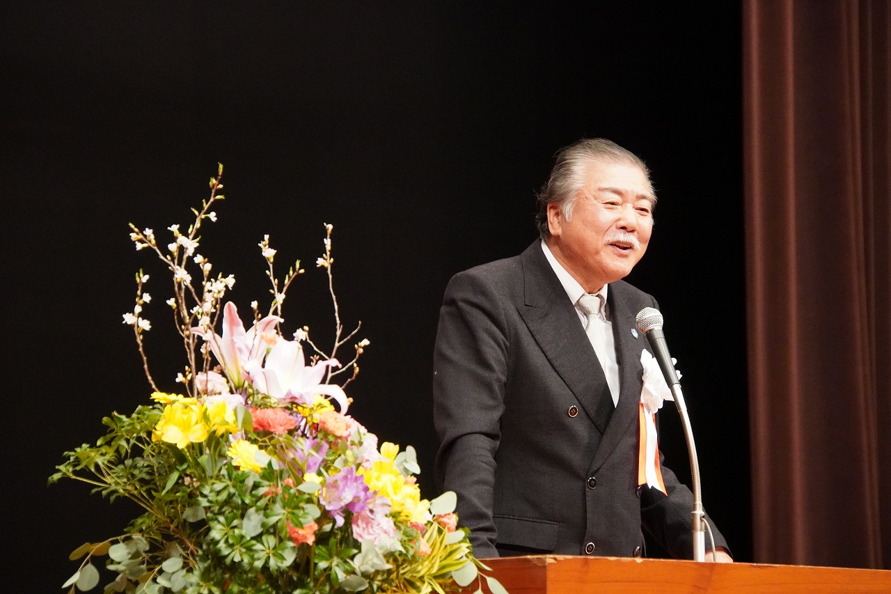 理事長告示に立った酒井秀光理事長は、成美学園高等學校設立3年目であることに触れ、「みなさんは1期生として入学され、あっと言う間の3年間だったと思います。本当にみなさん立派になりましたね」と卒業生の成長をたたえました。