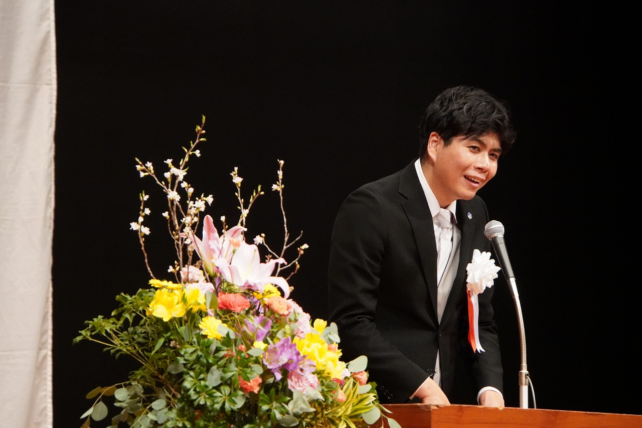 「自分にはこういう未来が待っているんだ、とイメージして逆算しながら、挑戦することを楽しんでもらいたい。そして、謙虚に学んでほしい。私自身も学園を立ち上げたとき、たくさんの先輩からお力添えをいただきました。何でも謙虚に学んでいこうという姿勢があったからこそ、今こうしてみなさんに還元できているのだと思います。最後に、感謝すること。保護者の方々、先生、福祉指導員、eスポーツや音楽の講師のみなさん、そして隣にいる仲間たち、たくさんの人に支えてもらったからこその卒業です。たくさんの『ありがとう』を伝えてください」と述べました。
