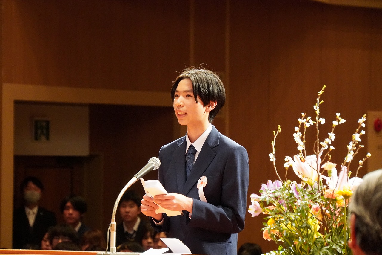 クラブ活動や行事での思い出も振り返り、「料理クラブでは、料理経験がほとんどなかった私に丁寧に教えてくれました。みんなで協力して作った料理の味は今でも心に残っています。先輩方の優しさや姿勢をしっかりと受け継ぎ、次は自分たちが後輩を支える番だと感じています」と決意を述べました。