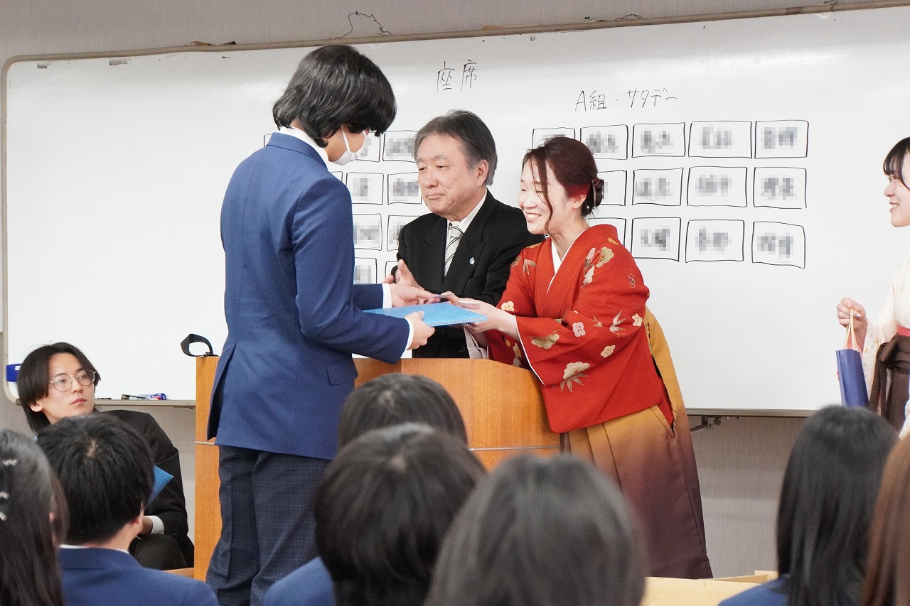 表彰では、「全国私立通信制高等学校協会会長賞」、「成美学園理事長賞」を受賞した生徒がそれぞれ賞状を手渡されました。