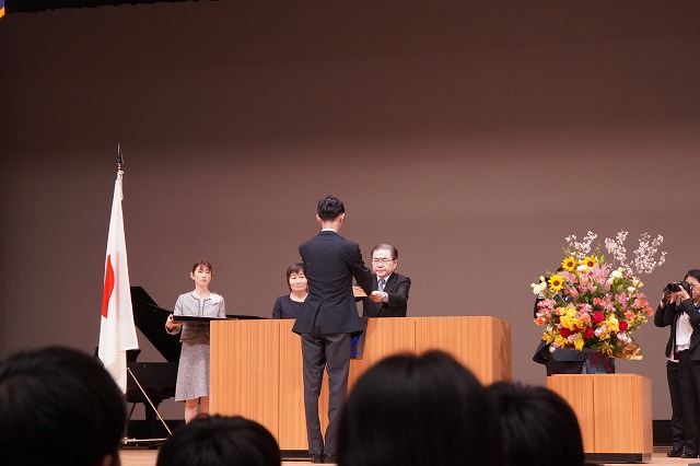 卒業証書授与では、出席した卒業生全員が登壇しました。先生や保護者、友人たちへの感謝を一人ひとり述べた後、池田晃理事長より卒業証書を受け取っていました。