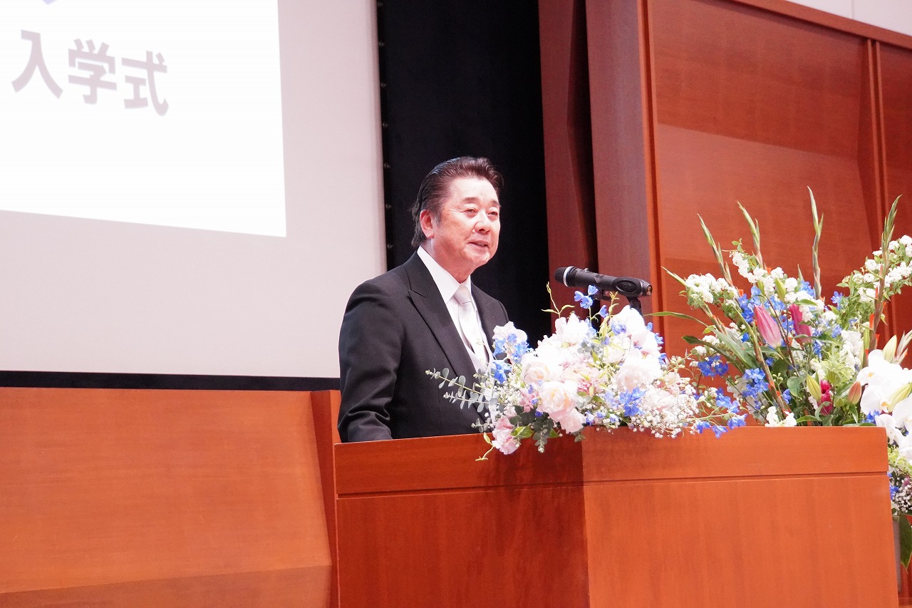 その後、来賓を代表し鹿島学園高等学校・鹿島朝日高等学校・鹿島山北高等学校の大森伸一理事長が祝辞を述べました。脳科学者のアルフレッド・アドラーの「マイナスをプラスに変える力、これは人間だけに与えられた能力である」という言葉を引用し「この言葉を思い出して困難を乗り越えてほしい」と激励しました。