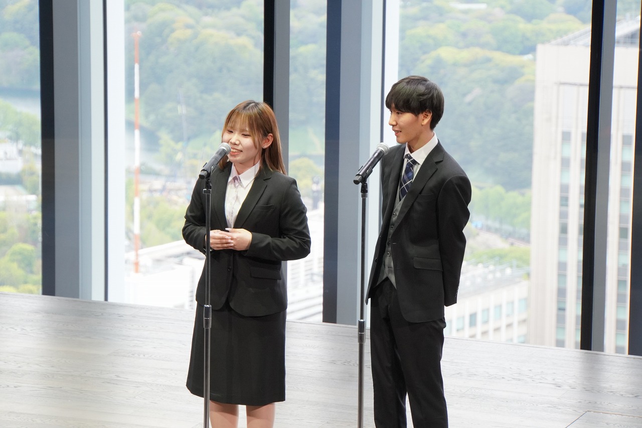 二人目の清水麗さんは、「時間や場所にとらわれない学びの環境を最大限に生かし、学問の探求に没頭したい」と述べ、「民俗学の視点から、非科学的な現象や存在が人々に与える影響を深く研究し、科学的な思考力を養うことに挑戦します」と決意を述べました。