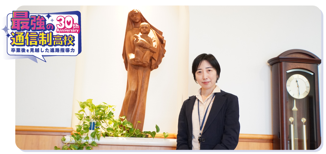 仙台白百合学園高等学校 通信制課程 エンカレッジコースでは、生徒一人ひとりの思いやペースを尊重しながら、将来につなげる進路選択を支えています。担任が中心となって行う丁寧な進路指導とサポート体制について、日ごろから生徒に向き合っている教頭の河西妙子先生に伺いました。