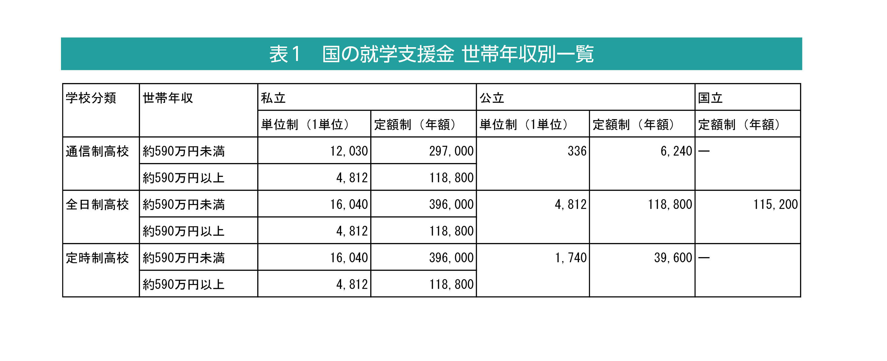 全国私立通信制高等学校協会(私通協)の調べによれば、23年度時点で私立通信制高校生世帯の就学支援金受給状況は、加算額受給50.3%、標準額受給24.8%、受給対象外24.9%でしたから、対象外だった四分の一の世帯も就学支援金を受け取ることができました。