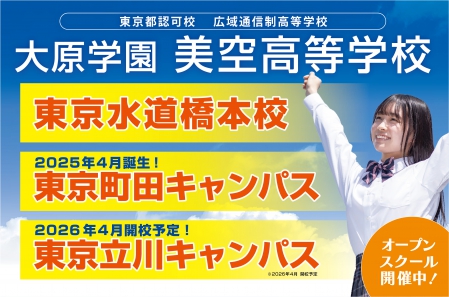 全国に100校以上のグループ校をもつ学校法人大原学園が設立した「東京都認可」の通信制高校です。2025年4月には、「東京水道橋本校」に加え、「東京町田キャンパス」を開設し、2026年4月には「東京立川キャンパス」が開設予定です。